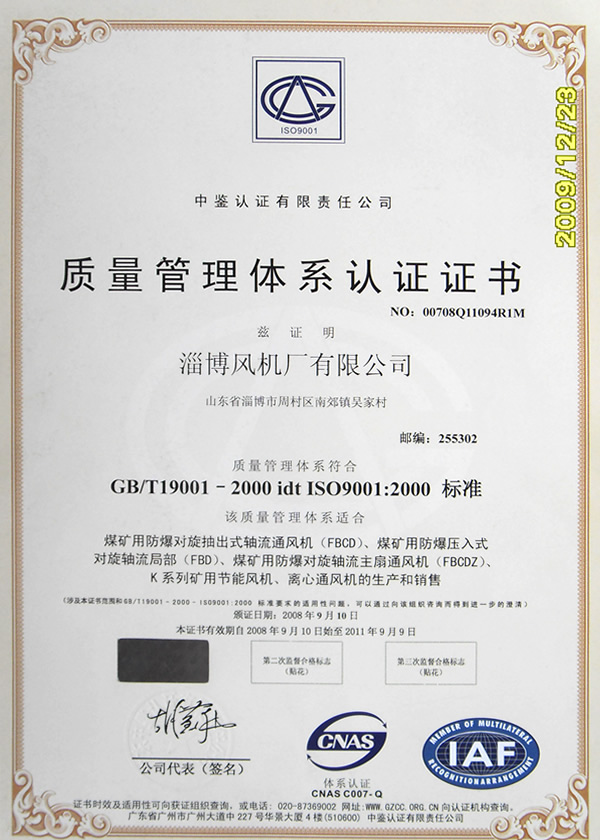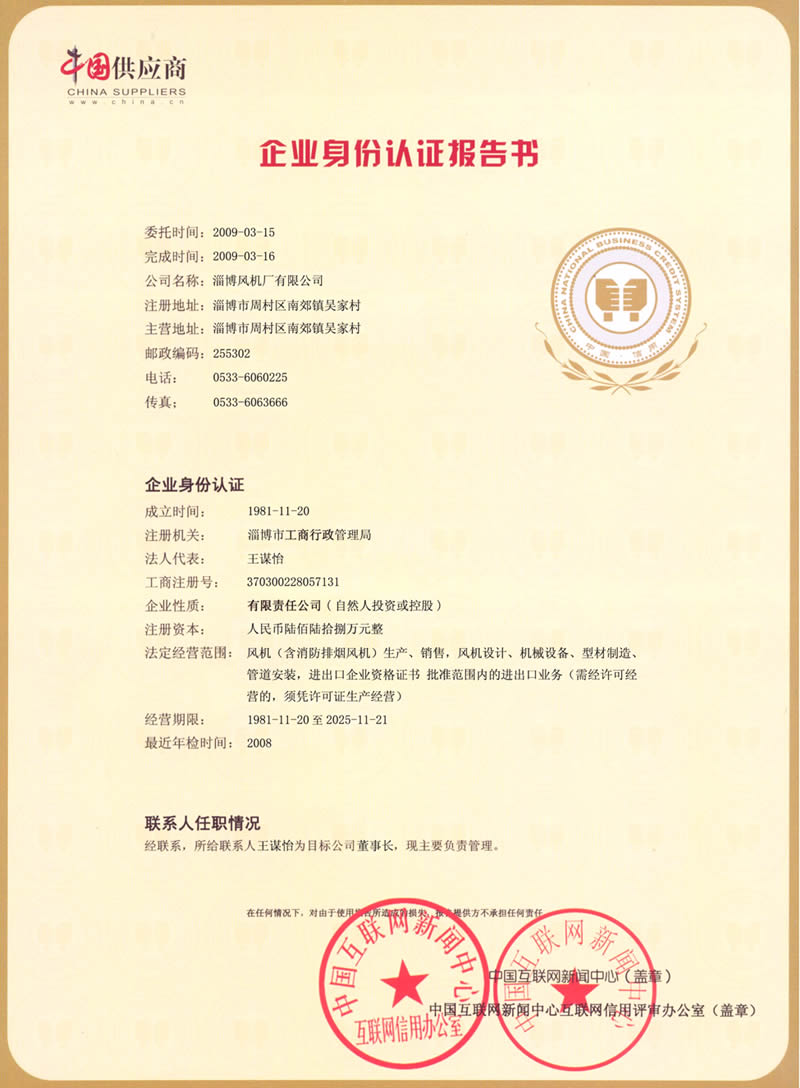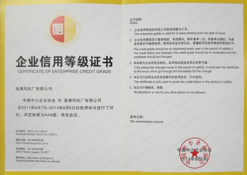 熱烈慶祝:一、淄博風(fēng)機(jī)廠有限公司全系產(chǎn)品通過能效綠色節(jié)能環(huán)保二級認(rèn)證. 二、 淄博風(fēng)機(jī)廠有限公司通過安全標(biāo)準(zhǔn)化驗(yàn)收合格. 三、注冊資金增資至7800萬.